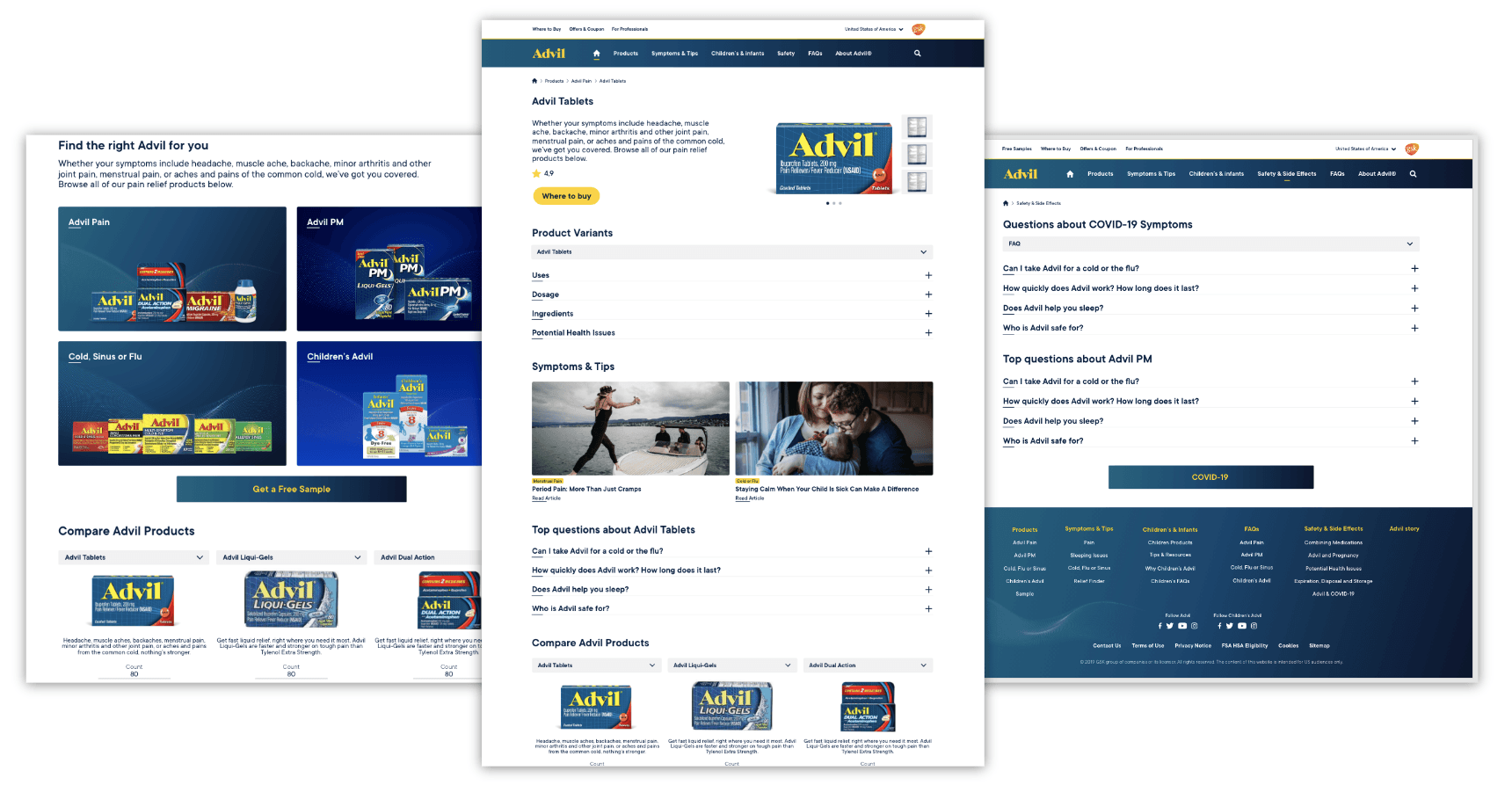 Advil was able to surpass their traffic by more than 50% from prior designs, as an outcome of a successful redesign merging 4 websites into a single address.